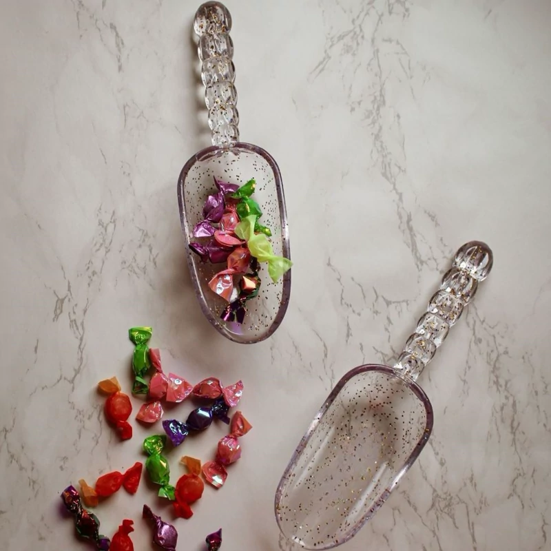 قاشق ادویه دسته چوبی مدل سر تاس تیغه رنگ طلایی