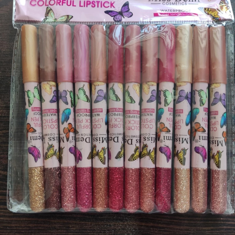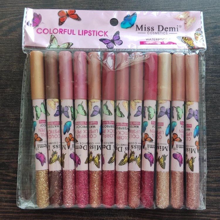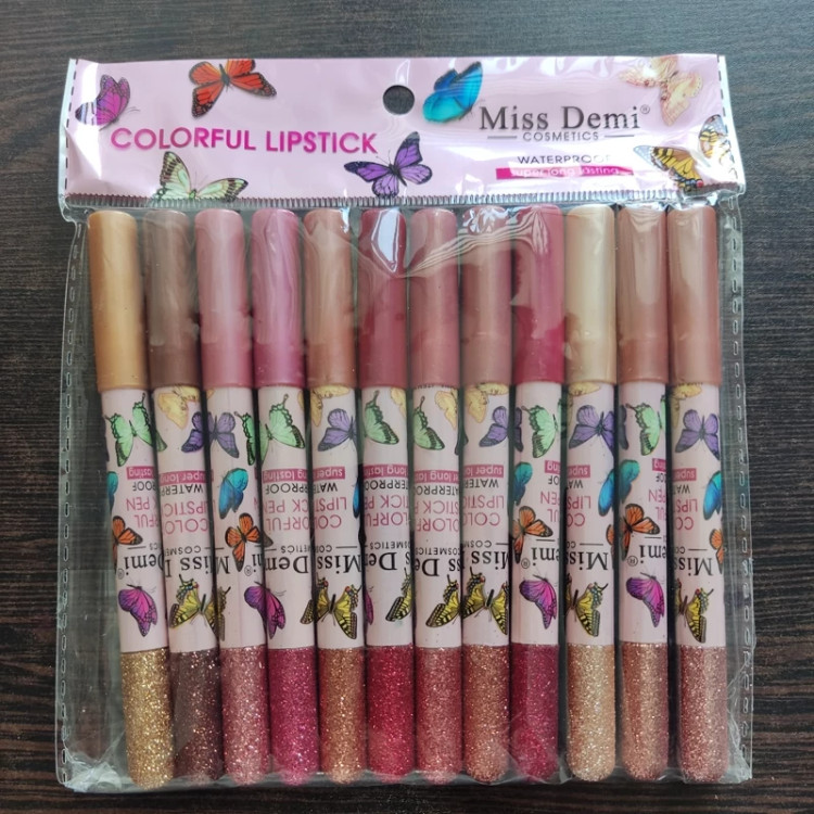 پک 12 عددی رژلب مدادی گلیتری با رنگبندی جذاب و عالی پک رژ لب مدادی دارای 12 رنگ متنوع پیگمنت دهی بالا ظاهر زیبا روی لب