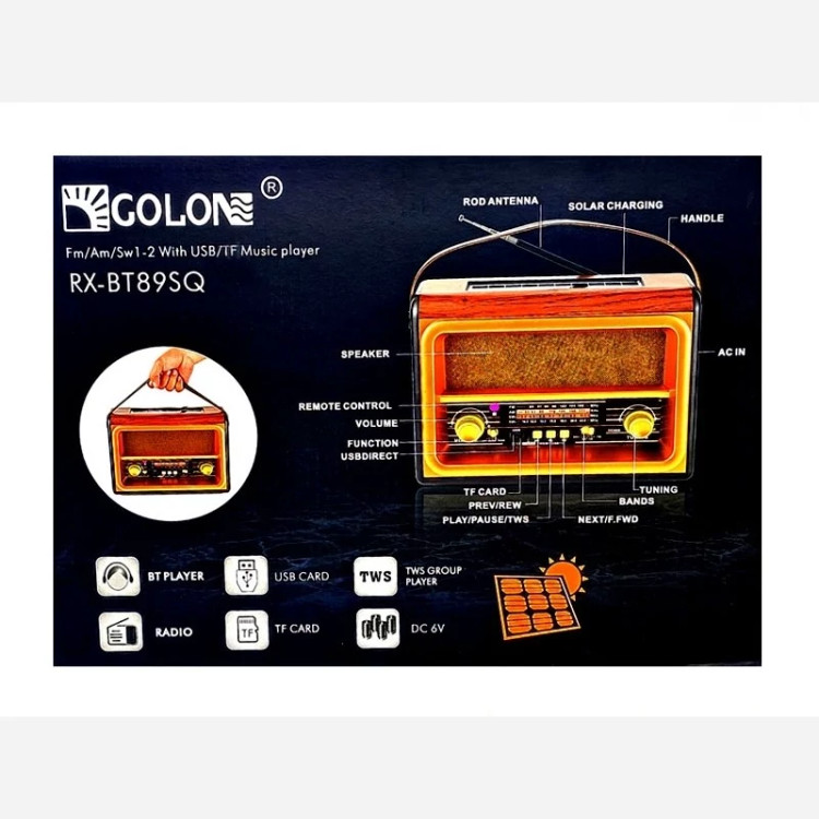 رادیو اسپیکر خورشیدی گولون GOLON RX-BT89SQ اصلی و اورجینال