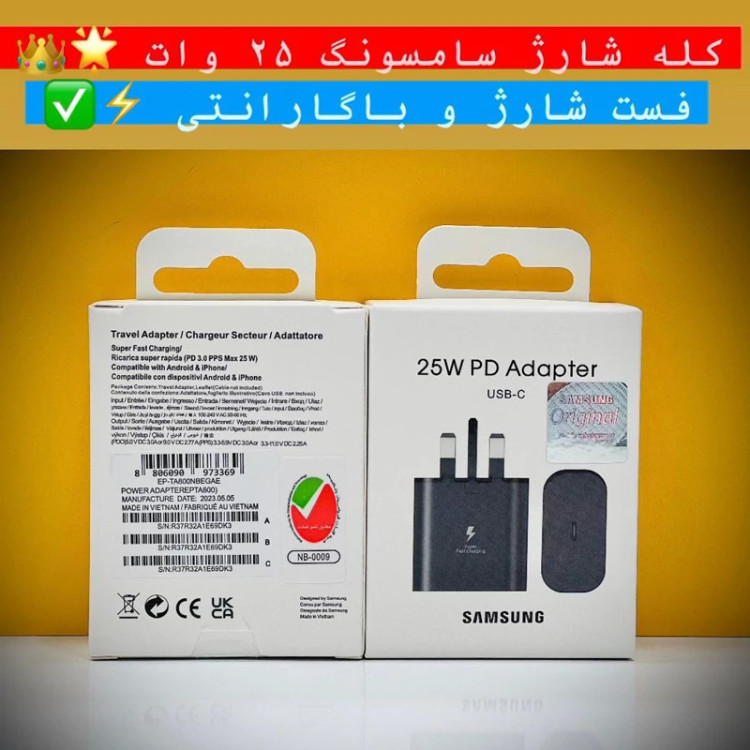 کله شارژ سامسونگ 25 وات اصلی سوپر فست شارژ با گارانتی شارژ سریع SAMSUNG 25W ارسال سریع
