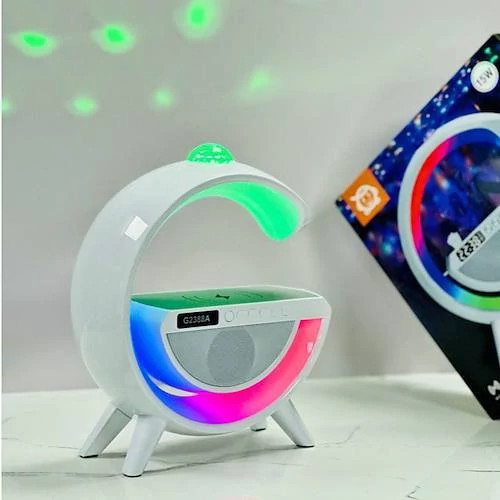اسپیکر شارژر وایرلس چراغ خواب رادیو G مدل G2388 دارای رقص نور سقفی فلش مموری آیوکس