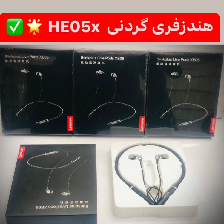 هدفون هندزفری گردنی بی سیم لنوو HE05X اصلی اورجینال کیفیت عالی نگهداری شارژ مناسب قیمت مناسب برند معتبر LENOVO