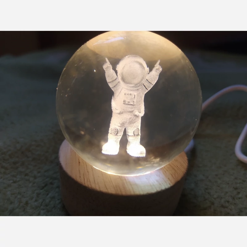 گوی کریستال طرح فضانورد سایز 5 با پایه چوبی
