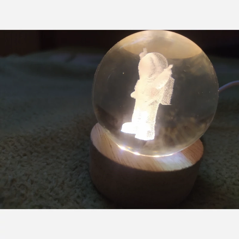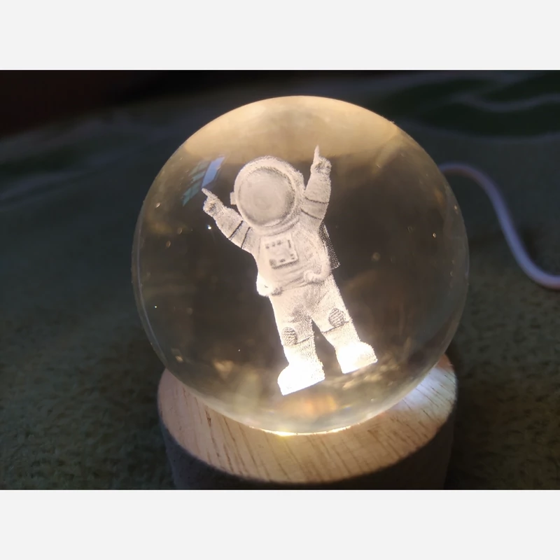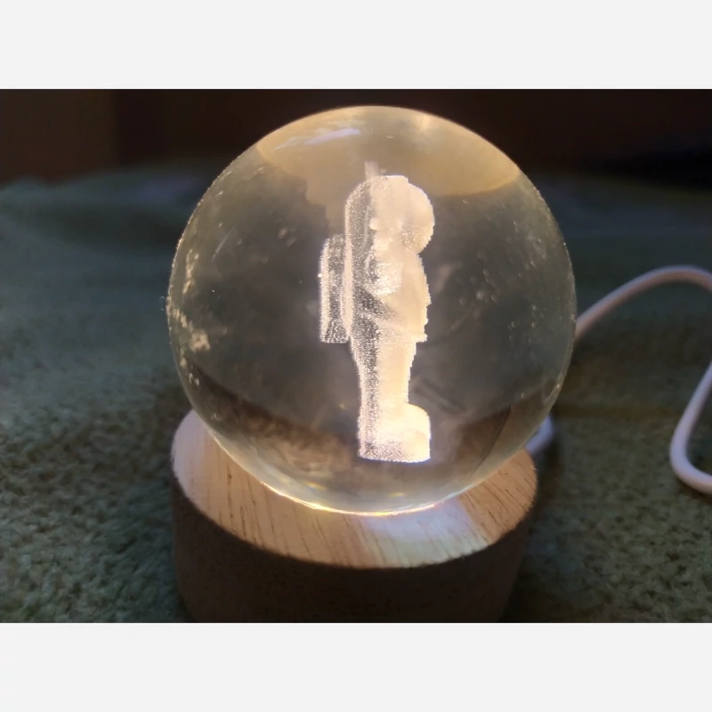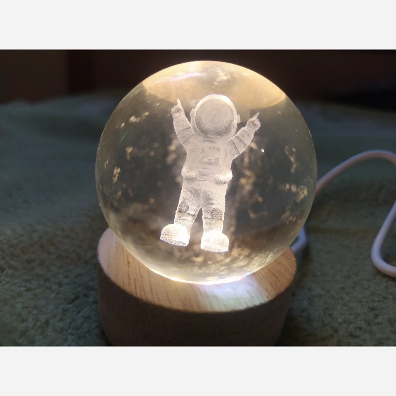 گوی کریستال طرح فضانورد سایز 5 با پایه چوبی