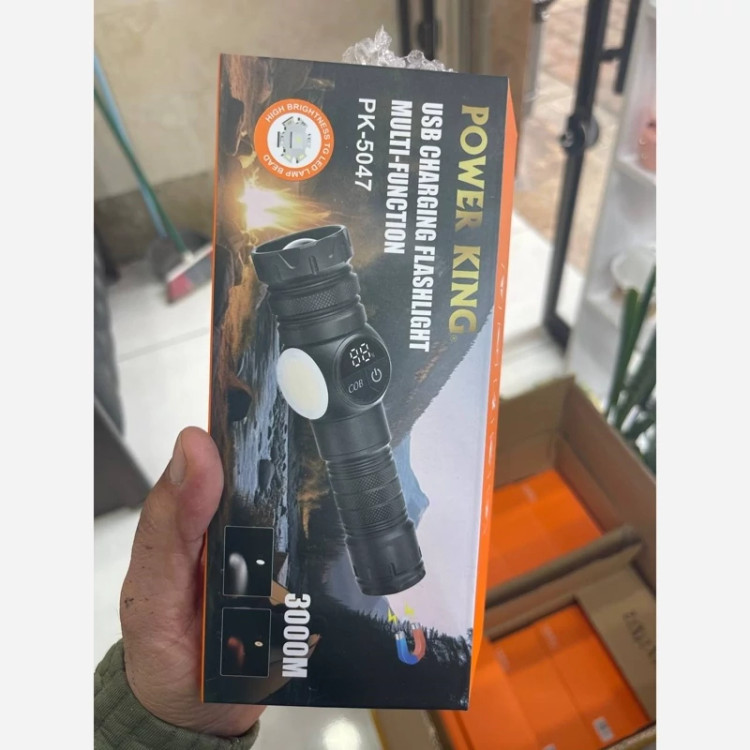 چراغ قوه COB دار درجه یک پر نور فلزی پاورکینگ POWER KING PK-5047 برد 3 کیلومتر