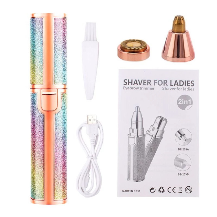 دستگاه اصلاح صورت و بدن ماتیکی دو کاره شارژی رنگی یک محصول فوق العاده با کیفیت و با کارایی های بالا می باشد که توسط آن که اندازه بسیار مناسبی شبیه یک رژ لب معمولی دارد می توانید هم کار اصلاح موهای زائد نقاط حساس صورت و بدن را بدون درد انجام دهید و هم توسط سری موزن آن با دقت بسیار بالا ، ابروها و موهای داخل بینی و روی گوش ها را کاملا تمیز نمایید. در واقع شما با خرید یک محصول چند محصول پرکاربرد را همیشه همراه خود خواهید داشت و چی از این بهتر؟ رنگ فوق العاده زیبای آن باعث می شود در همان نگاه اول عاشقش شوید و از داشتن آن نهایت لذت را خواهید داشت. شارژی بودن و عدم نیاز به تهیه و تعویض باتری از دیگر نکات مثبت این محصول می باشد که توسط کابل های موبایل های معمولی اندرویدی نیز می توانید در همه جا آن را شارژ نموده و استفاده نمایید.این دستگاه شیور زنانه دوکاره دارای دو سری مختلف می باشد که سری اول همان سری معروف دستگاه موزن ماتیکی می باشد که برای از بین بردن موهای زائد صورت و بدن استفاده می شود و سری دوم آن ، موزن بوده و برای اصلاح ابرو و از بردن موهای زائد ابرو و بینی و گوش قابل استفاده می باشد ، سری ها به راحتی تعویض شده و بعد از جدا کردن از دستگاه می توانید آن ها را با آب شستشو دهید. برای تعویض سری ها کافی است کمی آن ها را چرخانده و به سمت بیرون بکشید تا جدا شوند و برای جا انداختن دوباره آن ها نیز کافی است سری را در جای مشخص قرار داده و کمی بچرخانید، بسیار ساده است. این محصول دارای کیفیت درجه یک می باشد و برای هدیه دادن بسیار بسیار گزینه مناسب و ایده آلی است زیرا هر خانمی به دلیل رنگ خیره کننده اش از دیدن آن شگفت زده می شود و در عین حال بسیار کارآمد و مفید می باشد و آن را تبدیل به هدیه ای دوست داشتنی و به یاد ماندنی تبدیل می کند که همیشه آن را در کیف خود به همراه خواهد داشت. برای شارژ کردن این محصول کافی است توسط کابل شارژ درون جعبه و یا هر کابل شارژ میکرو یو اس بی موبایل های اندرویدی آن را توسط شارژرهای موبایل یا یو اس بی کامپیوتر و یا حتی پاوربانک شارژ نمایید و بعد از هر بار فول شارژ شدن می توانید برای مدت زیادی از آن استفاده نمایید. در این محصول یک عدد چراغ نیز وجود دارد که باعث می شود خیلی بهتر بتوانید موهای زائد را مشاده نموده و از شر آنها خلاص شوید این چراغ به اندازه کافی پر نور می باشد.