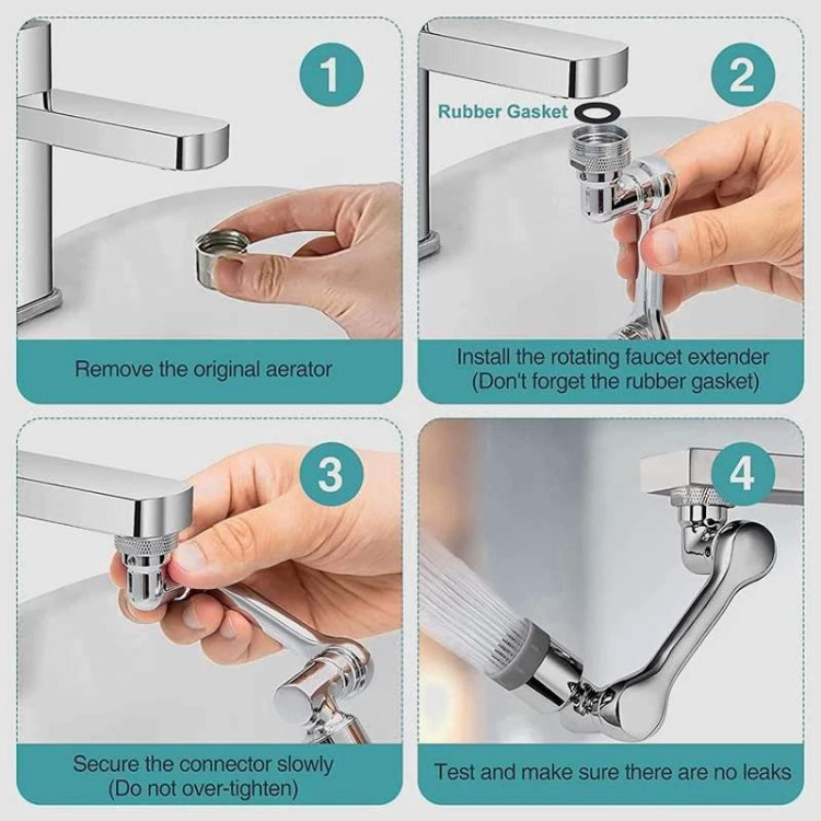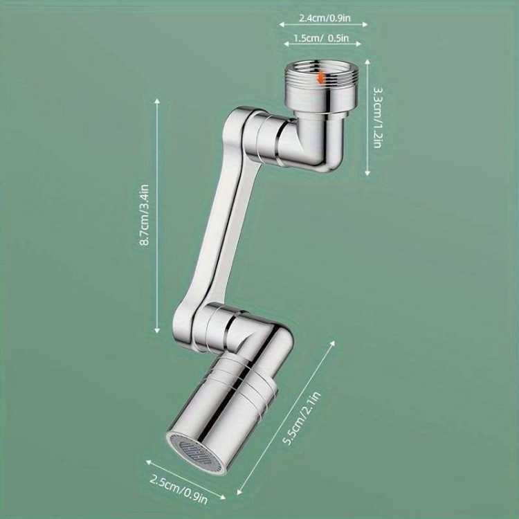 محصولی جدید با طراحی منحصر به فرد که می تواند به آسانی بهره برداری از یک شیر آب معمولی را برای شما به حداکثر برساند . این سرشیر دارای 3 قسمت مشتمل بر سری اتصال به شیر آب ، سری خروجی و بازوی میانی می باشد که هر کدام قابلیت چرخش 360 درجه به صورت تکی و در مجموع ، حرکت در زاویه 1080 درجه را دارند ، بنابراین به ساده ترین شکل ممکن می توانید زاویه خروجی آب را انتخاب و تنظیم نمایید ، این یعنی کمترین محدودیت ممکن برای استفاده از آب و در نهایت صرفه جویی در مصرف . سری اتصال به شیر دارای قطر اصلی 2.2 سانتی متر می باشد که امکان اتصال به بسیاری از شیرهای آب را دارد ، اما در غیر این صورت می توانید از یک مبدل متناسب با نوع شیر آب برای اتصال استفاده کنید . خروجی سر شیر آب چرخشی ، پوششی از جنس ABS مقاوم دارد که مجهز به دو نوع پاشش خروجی آب است ، بنابراین می توانید تنها با مقداری چرخش سری ، پاشش آب را تغییر دهید . وجود بازوی میانی سر شیر 3 محور (1080 درجه) علاوه بر کمک به حرکت در جهات مختلف امکان مقداری فاصله گرفتن خروجی سرشیر تلسکوپی از شیر آب اصلی را فراهم نموده ، به طوری که شما این قابلیت را خواهید داشت تا کمی خروجی را بالاتر و یا پایین تر از حالت عادی تنظیم نمایید . از سر شیر آب چرخان برای شیرهای مختلف (متناسب با ابعاد) روشویی ، سینک و ... می توانید استفاده کنید.