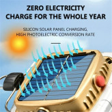مینی پروژکتور خورشیدی یکی از حرفه ای ترین نوع چراغ قوه های موجود در بازار می باشد که دارای پنل خورشیدی قدرتمند برای ذخیره نیرو است. این محصول دارای یک عدد درگاه خروجی USB و یک عدد پنل خورشیدی برای شارژ کردن مینی پروژکتور است. مینی پروژکتور خورشیدی دارای یک حالت نوردهی می باشد که در حالت فول شارژ به راحتی 8 الی 12 ساعت نوردهی مداوم دارد. بدنه ساخته شده تلفیقی از آلومینیم و پلاستیک فشرده می باشد که علاوه بر آنکه مقاومت بسیار بالایی دارد بلکه کاملا ضد آب نیز می باشد.