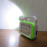 در ابتدا باید بگوییم که چراغ خورشیدی اضطراری قابل شارژ Searchlight Lamp از دو قطعه که شامل چراغ روشنایی COB و LED و پنل خورشیدی تشکیل شده است. اولین بخش این محصول، چراغ قوه بسیار قوی که پرتاب نور قابل توجهی را دارد است دومین بخش چراغ کنار که فضای بیشتری را روشن میکند که در ابعاد12*12 سانتی متر با وزن سبک طراحی شده است. همین وزن سبک و ابعاد جمع و جور یک ویژگی مثبت برای چراغ روشنایی اضطراری محسوب می شود که خیلی راحت می توانید آن را با خود حمل کنید. ویژگی قابل توجه این است که شما اگر در کمپ هستید و دسترسی به برق ندارید این چراق دارای پنل خورشیدی است و خود به خود به وسیله نور خورشید شارژ میشود و شب براحتی قابل استفاده میباشد.و این محصول قابلیت شارژ از طریق برق شهری را هم دارد و همراه چراغ کابل شارژ نیز ارسال میشود.