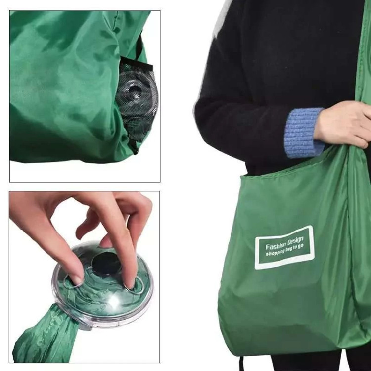 یک ساک خرید تاشو ، جیبی ، قابلیت جمع شوندگی داخل قاب مخصوص براحتی و با چرخش اهرم مخصوص ، بزرگ و جادار و دوست دار محیط زیست میباشد. بسیار مقاوم ،درجه یک و بسیار سبک ساخته شده و قابلیت استفاده برای خوار و بار ،استفاده روزمره و مسافرت و… را دارد.