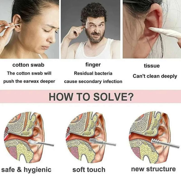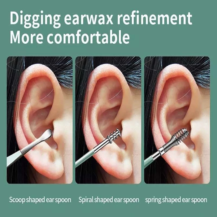 با استفاده از این تمیز کننده گوش، میتوانید مومهای تجمع یافته در مجرای گوش را به آسانی پاک کنید تا از درد و گرفتگی مجرای گوش و کاهش کیفیت صداهایی که به گوشتان میرسد جلوگیری کنید. این گوش پاک کن از جنس استیل ضد زنگ ساخته شده و دارای قابلیت چرخش 360 درجهای برای پاک کردن تمام مومهای موجود در مجرا است. مجموعه شامل 6 عدد سری مختلف برای تمیز کردن انواع مجاری گوش مناسب است و به پوست هیچ گونه خراش یا آسیبی وارد نمیکند. همچنین این مجموعه به همراه یک کیف قابل حمل برای پاک کردن موم ارائه میشود.