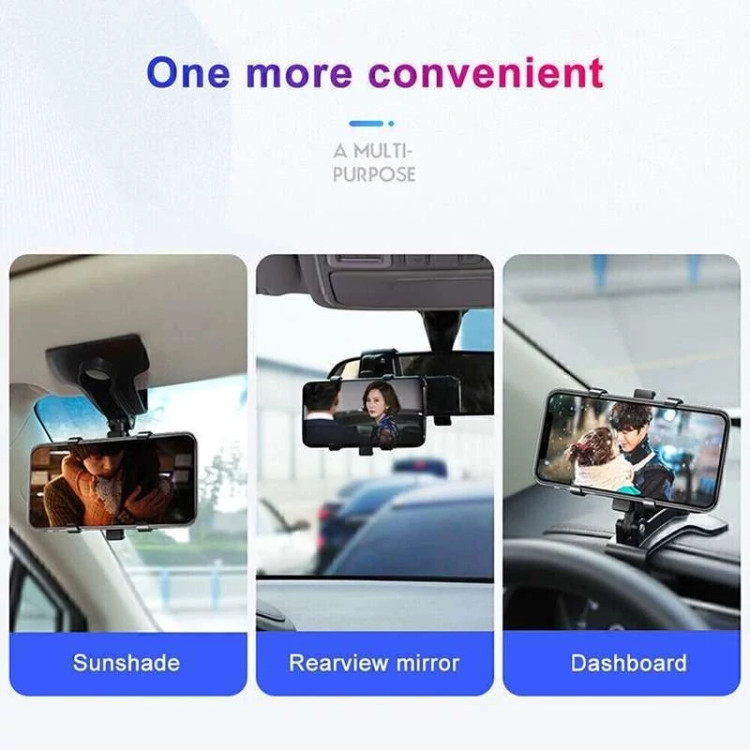 هولدر موبایل جلو داشبورد و سایه بان دارای گردنی با قابلیت چرخش 180 درجهای و نگهدانده موبایل با قابلیت چرخش 360 درجهای است. این امکان به شما اجازه میدهد تا زاویه دید خود را به راحتی تنظیم کنید و بهترین زاویه را برای استفاده از تلفن همراه خود پیدا کنید.