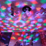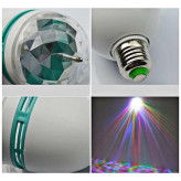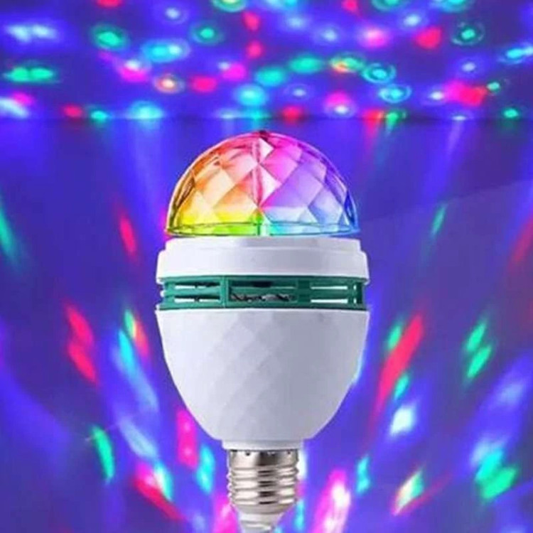 این لامپ با نورهای بسیار زیبا که دارای رنگهای مختلف می باشد، جذابیت بی نظیری را به محیط شما می دهد و هنگامی که این رنگها با هم مخلوط می شوند طرح های بسیار زیبا و دلنشینی در محیط ایجاد می کند. این لامپ در جشن های شما و یا مغازه و حتی اتاق کودک شما قابل استفاده می باشد. فقط کافیست آن را در سرپیچ لامپ ببندید تا شروع به رقص نور و چرخش کند، همچنین این لامپ دارای موتور گردان 360 درجه می باشد و در حالت اتوماتیک قابلیت تعویض طرح نورها را به صورت خودکار دارد بطوریکه رقص نوری خیره کننده و جذاب در مکان مورد نظر شما ایجاد می کند. با استفاده از این لامپ در مجالس خود همه را حیرت زده کنید!