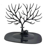 آویز زیور آلات طرح گوزن یک وسیله بسیار کاربردی برای آویز کردن جواهرات یا دیگر لوازم است که علاوه بر کاربردش به عنوان وسایل دکوراتیو منزل نیز می توانید از آن استفاده نمایید. شاخ های طراحی شده برای این گوزن به شکل درخت و زیاد هستند تا بتوانید با خیال راحت تمامی جواهرات خود را یا به شاخه ها آویزان کنید و یا درون سینی پایه آن قرار دهید. جنس این محصول از پلاستیک درجه یک و با کیفیت می باشد بنابراین نگرانی بابت افتادن یا شکستن آن نخواهید داشت. آویز جواهرات گوزن تنها برای خانم ها نبوده و آقایان نیز می توانند برای نگهداری ساعت، انگشتر، کیف پول، کلید و ... از این محصول استفاده نمایند.