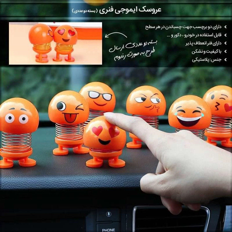 عروسک ایموجی فنری آن قدر دوست داشتنی هستند که فقط به عنوان عروسک های متحرک در خوردو به کار گرفته نشوند و پای خود را فراتر بگذارند و بر روی میز کار و … هر چند دقیقه با حرکت داده شدنشان توسط شما حس خوبی را به شما منتقل کنند و کمی از خستگیتان را برطرف سازند. پس اگر شما هم از طرفداران پر و پا قرص بیان احساساتتان با این شکلک ها هستید هرچه زودتر شکلک مخصوص به خود را پیدا کنید. این کالا شامل دو عدد عروسک ایموجی فنری با طرح رندوم می باشد.