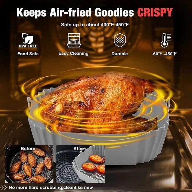 مناسب برای پخت انواع غذاها: قالب سیلیکونی هواپز، انتخابی مناسب برای پخت و پز انواع مرغ، سیب زمینی و دیگر غذاهاست. با این قالب، میتوانید با استفاده از دستگاه هواپز، غذایی سالم و خوشمزه تهیه کنید.