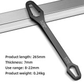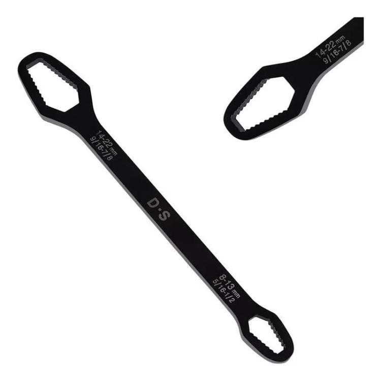 آچار دو سر رینگی همه کاره 8-22 مشکل بیشتر عاشقان ابزار و تمام فنی کاران را حل کرده است ، همیشه همراه داشتن یک کیف ابزار کامل بسیار دشوار و سنگین هست و در بیشتر مواقع آچار ها بیشترین وزن یک کیف ابزار به خود اختصاص می دهند ، آچار همه کاره دوسر رینگی 8-22 با دارا بودن 14 سایز از مهره بهترین جایزین ست های سنگین آچار های رینگی می باشند. با خرید آچار همه کاره دوسر رینگی دیگر از ناقص شدن آچارهای خود در زمان جابجایی کیف ابزار آسوه هستید، نیازی به حمل تعداد زیاد آچار ندارید و تنها یک آچار برای شما کفایت می کند. آلیاژ آچار همه کاره دوسر رینگی 8-22 از بالاترین کیفیت فولاد ساخته شده تا در برابر رطوبت و سایش مقاومت لازمه را داشته باشد. بهترین گزینه برای داخل ماشین و کسانی که کمپ می کنند یا دوچرخه سوارانی که فضای کمی برای حمل کیف ابزار های بزگ و پر سروصدا ندارند می باشد .