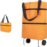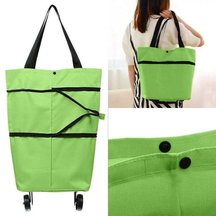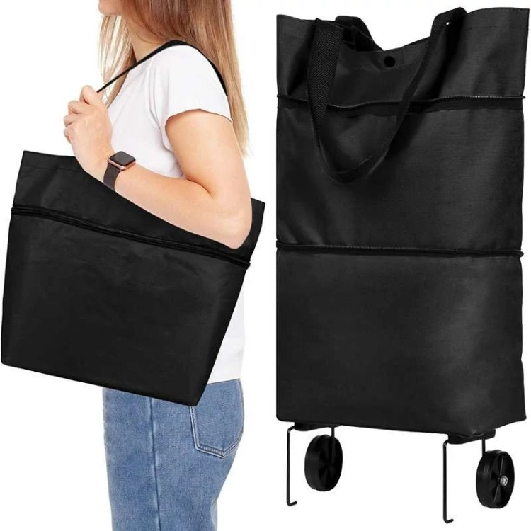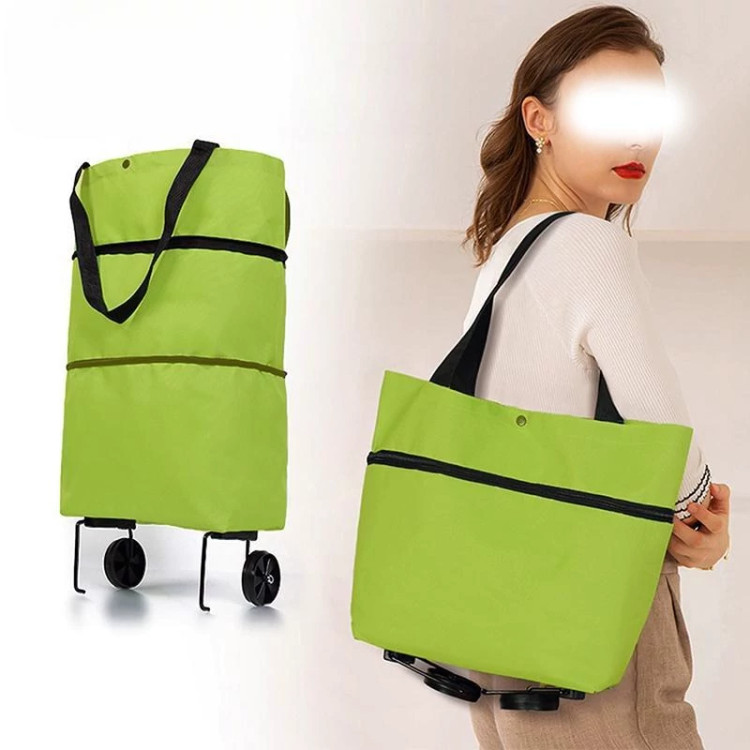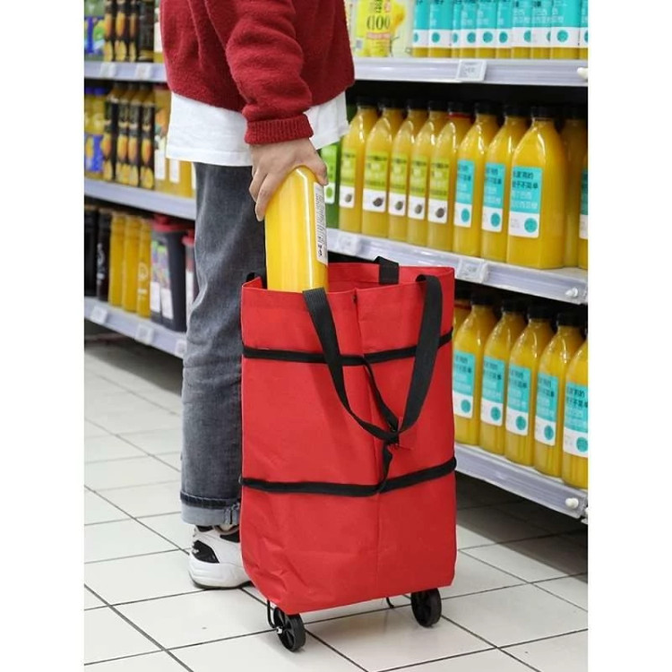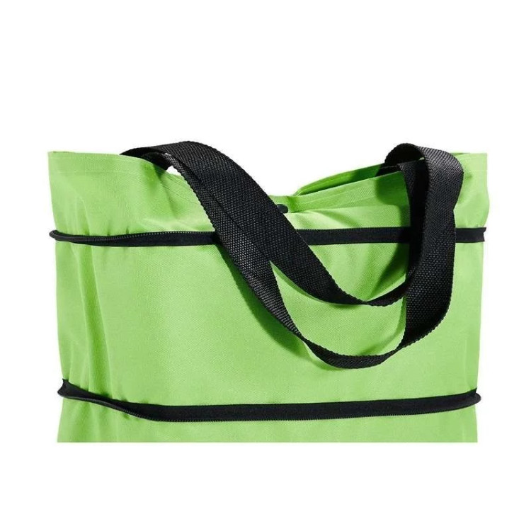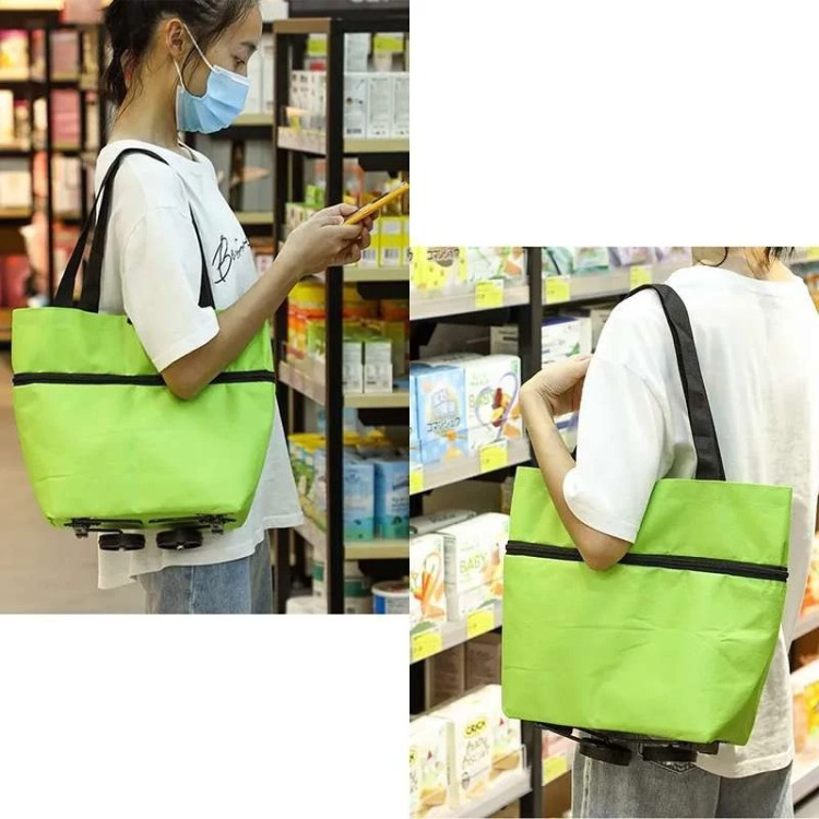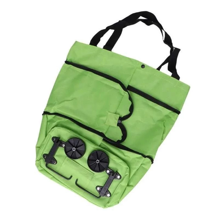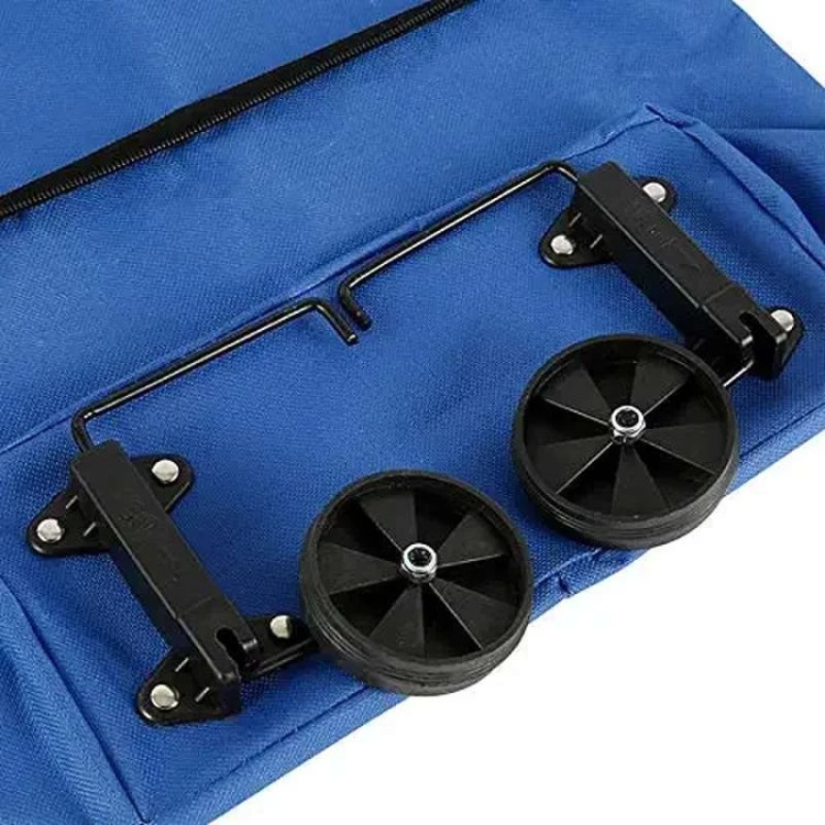 کیف خرید چرخدار تاشو دارای چرخهایی است که به شما کمک میکند بدون اینکه وزن خریدتان را بر روی شانهها یا دستهای خود احساس کنید، خریدتان را بهراحتی حمل کنید. برای استفاده از ساک خرید در حالت چرخدار، کمی تایرها را به سمت عقب کشیده تا از محل خود خارج شوند و در حالت چرخدار از ساک خرید استفاده کنید.