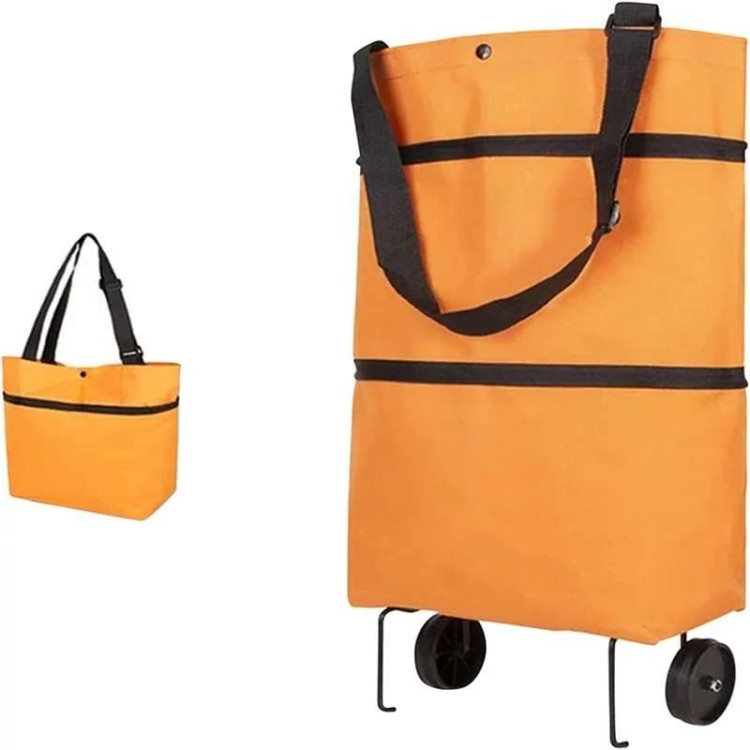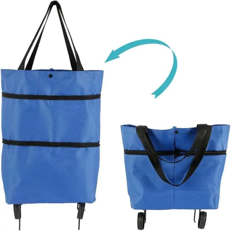 این کیف از جنس پارچه برزنتی ساخته شده و ضد آب، ضد پارگی، گرد و غبار و بادوام است که با طرح های رنگارنگ چاپ شده، شیک و مد روز است. چرخ های آن تاشو جهت حمل آسان می باشد، اندازه آن می تواند مانند یک کیف کوچک پس از تا کردن باشد. پارچه نایلونی با چگالی بالا باعث می شود ظرفیت باربری قوی داشته باشد. کیسه با ظرفیت زیاد می تواند بسیاری از چیزها را در خود جای دهد، مانند لباس، میوه، سبزیجات، کفش و غیره.