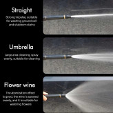 شما می توانید با استفاده از این نازل کارواش دستی را به کمک یک بست به شلنگ متصل کرده و از نتیجه آن لذت ببرید. معمولا از این کارواش دستی برای آبیاری باغ، شستن ماشین ها، چمن زار، ایوان، چمن ها، گلها و تمیز کردن حمام، آشپزخانه، بالکن، راهرو، فرش و خیلی موارد دیگر استفاده می شود.برای ساخت کارواش خانگی jet از آلیاژ آلومینیوم در بدنه آن استفاده شده است که برای جلوگیری از پوسیدگی و افزایش مقاومت در برابر آب بسیار با کیفیت می باشد. همچنین دارای مقاومت بالا برای جلوگیری از نشت آب، مقاوم در برابر زنگ زدگی حتی در استفاده طولانی مدت می باشد که بسیار بادوام تر از محصولات مشابه خود می باشد.حالت های آب متعددی برای رفع هر نیاز در شست و شوی آبی وجود دارد، مانند ماشین، پیاده رو، پاسیو، ناودان، عرشه، خانه و هر مکانی. انواع حالت ها به صورت کاملا انتخابی و فقط با پیچاندن بخش ابتدایی این نازل، که حالت پیچی دارد ، می توانید این حالت ها را تغییر دهید و استفاده کنید.با قابلیت سری پیچی قابل تنظیم می توانید جریان آب انعطاف پذیر و قابل تنظیم در این کارواش داشته باشید. به عبارت دیگر می توانید از حالت حمام، حالت آبپاش و حالت جت و چندین حالت دیگر استفاده کرده و به کمک نازل قابل تنظیم که در ابتدای کارواش قرار داده شده است، لکه های مختلف را شستشو داده و در مصرف آب صرفه جویی کند.