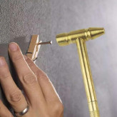 محصولی جدید ، کاربردی و البته با طراحی ظاهری زیبا است که تولید شده از جنس فلز مقاوم با تنوع رنگ طلایی می باشد . این کالا در حالت معمول یک چکش کوچک به طول کلی 16 سانتی متر با سری 5.4 سانتی متری است که از آن می توانید برای کارهای کوچک نظیر زدن میخ به دیوار استفاده کنید. اما تمام وجه تمایز کالا درون چکش است. اگر به جز چکش به پیچ گوشتی نیاز پیدا کردید ، کافی است انتهای دسته چکش را به صورت پیچی باز کنید ، خواهید دید یک پیچ گوشتی دو سر از درون آن خارج می شود که می توانید متناسب با نیاز ، آن را به کار گیرید .اما اگر به یک پیچ گوشتی کوچک چهار سو نیاز داشتید ، نگران نباشید ، انتهای دسته پیچ گوشتی دو سو را باز کنید ، یک پیچ گوشتی چهارسو را خواهید دید که نیاز شما را پاسخ خواهد داد ، ولی این چکش و پیچ گوشتی مجهز تر از آن است که تصور می کنید . انتهای پیچ گوشتی چهار سو یک مینی پیچ گوشتی دو سوی دیگر نیز تعبیه شده که در انتهای خود یک پیچ گوشتی ریز چهار سو دارد ، بدین ترتیب محصول شامل یک چکش و چهار پیچ گوشتی با سایز های متنوع تعبیه شده درون دسته خود می باشد که در بنا بر نوع نیاز می توانید از آنها استفاده کنید . سهولت در حمل و جابه جایی و نیاز به کمترین فضای ممکن برای نگهداری از جمله خصوصیات دیگر چکش پیچ گوشتی دار به شمار می رود .