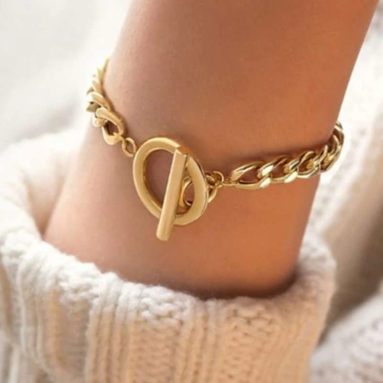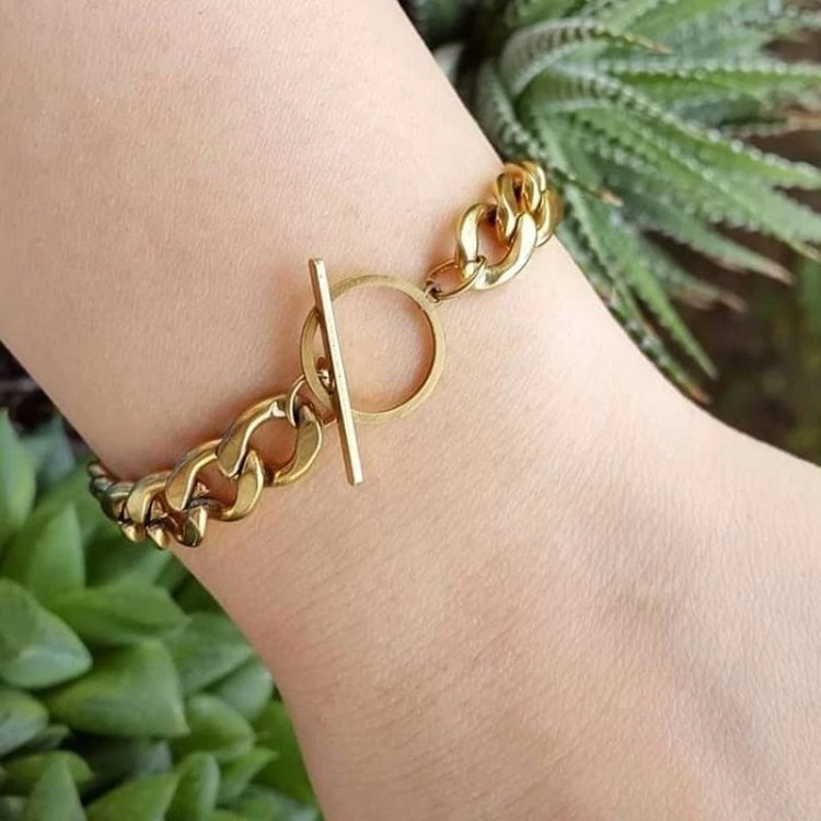 دستبند استیل اسپرت کارتیه با قفل تی از جنس استیل با کیفیت میباشد. این دستبند طرح کارتیه در دو رنگ طلایی و نقره ای ارائه میشود که هنگام ثبت سفارش قابل انتخاب است. این دستبنها به علت طرح اسپرت و محبوبیت بین اقایان و بانوان قابل استفاده هر دو میباشد که بسته به سلیقه هر شخص از رنگ طلایی و یا نقره ای استفاده میشود. دارای ضخامت بسیار محکم و بادوام است در انتهای این دستبند یک عدد قفل محکم مدل تی بسیار زیبا قرار گرفته است است. منظور از طرح کارتیه، همان کنار هم قرار گرفتن قطعههای زنجیر شکل، روی دستبند است. این کالا مخصوص افراد خوش سلیقه طراحی شده و ابعادی مناسب دارد. این کالا با استفاده به مرور زمان، تغییر رنگ ندارد. گوشههای دستبند کاملا گرد و صیقلی شده و به لباس و سایر اجسام گیر نمیکند.