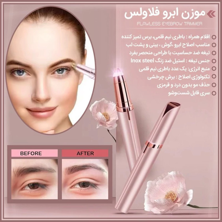 دیگر نیازی نیست همیشه برای مرتب کردن ابروهای خود به آرایشگاه مراجعه کنید با این موزن ابرو باکیفیت هرلحظه و همه جا ابروهای خودرا مرتب کنید.اگر جهت اصلاح موهای زاید بینی و اصلاح ابروی خود در جستجوی مو زن با قیمت مناسب و به صرفه می باشید که هم شیک باشه و هم سبک و در کیف لوازم آرایشی شما هم جا بشه. این مو زن ابرو که از نسل جدید موزن های تک کاره FLAW LESS هست، انتخاب کنید.موزن ابرو فلالس Flawless دارای سر فلزی است که این قابلیت باعث می شود هیچوقت این دستگاه زنگ نزند . این محصول همچنین برای موهای دور لب و گوش نیز قابل استفاده است و می توان به راحتی از آن استفاده کرد . این دستگاه از برند Flawless میباشد که این برند بسیار محبوب و خوش قیمت میباشد . همچنین این محصول اصل می باشد . منبع تغذیه این دستگاه از باتری نیم قلمی میباشد .