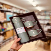 تا حالا به این فکر کردید که یه کادویی بخرید که هم جعبه کادویی داشته باشه هم ساک؟ خب پس بیاین یه فلاسک کادویی بهتون معرفی کنیم که جعبه داره و بهترین هدیه است!ست فلاسک و لیوان هدیه مناسب برای کوهنوردی و طبیعت گردی و مسافرت و رانندگی می باشد. این محصول دارای رنگ بندی در 5 رنگ می باشد . محتویات داخل ست فلاسک و لیوان استیل نیم لیتری، یک عدد فلاسک و سه عدد فنجان می باشد. دو عدد فنجان داخل جعبه و همچنین درب فلاسک که یک فنجان اضافه است. ست فلاسک و لیوان هدیه به همراه خود یک جعبه کادویی بسیار زیبا دارد. این ست با داشتن جعبه لاکچری میتواند گزینهی خوبی برای کادوی تولد یا مناسبتی به دوستان و آشنایان باشد.