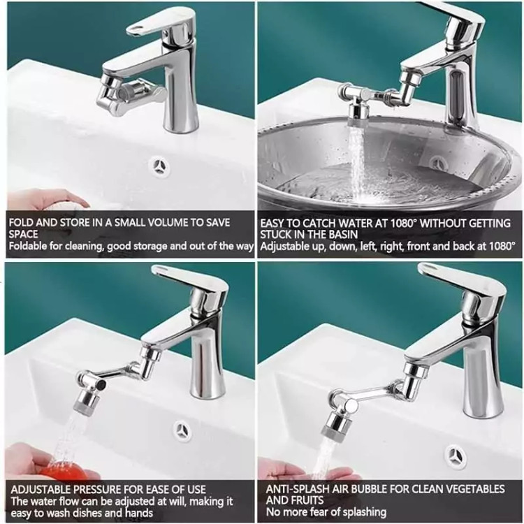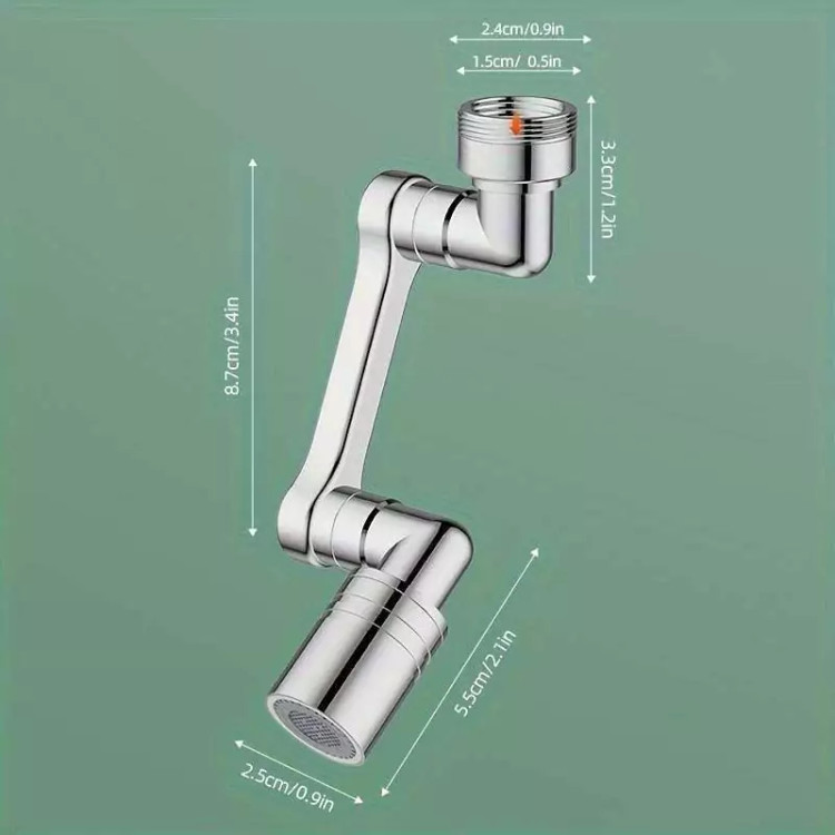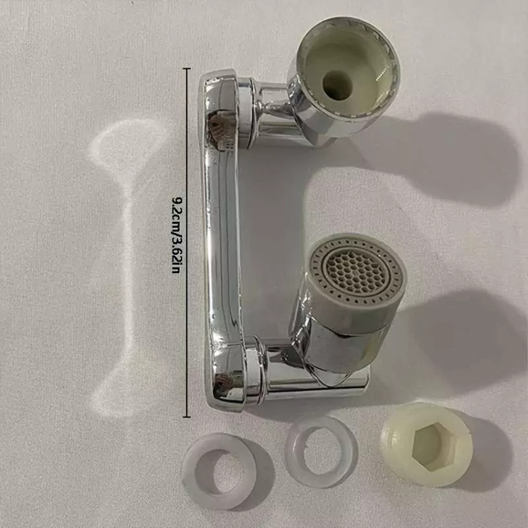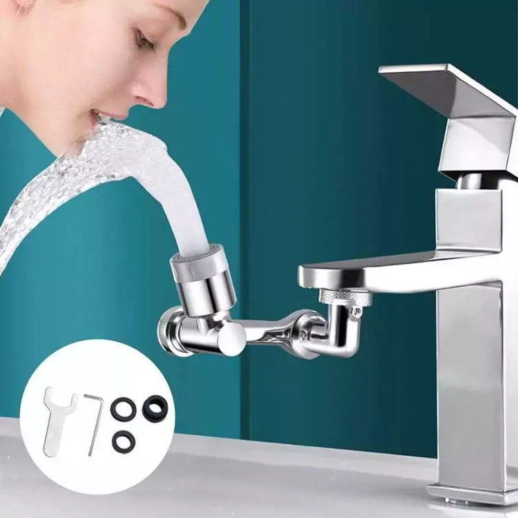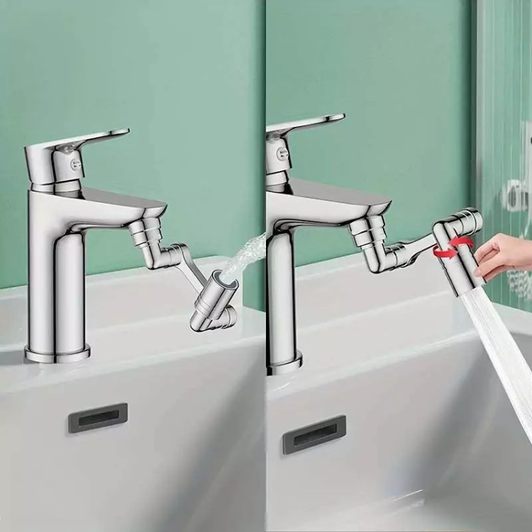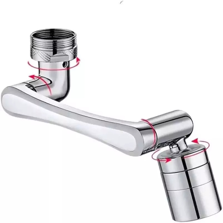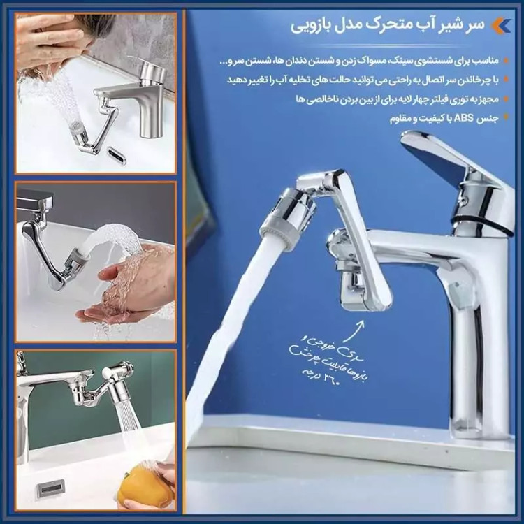 محصولی جدید با طراحی منحصر به فرد که می تواند به آسانی بهره برداری از یک شیر آب معمولی را برای شما به حداکثر برساند . این سرشیر دارای 3 قسمت مشتمل بر سری اتصال به شیر آب ، سری خروجی و بازوی میانی می باشد که هر کدام قابلیت چرخش 360 درجه به صورت تکی و در مجموع ، حرکت در زاویه 1080 درجه را دارند ، بنابراین به ساده ترین شکل ممکن می توانید زاویه خروجی آب را انتخاب و تنظیم نمایید ، این یعنی کمترین محدودیت ممکن برای استفاده از آب و در نهایت صرفه جویی در مصرف . سری اتصال به شیر دارای قطر اصلی 2.2 سانتی متر می باشد که امکان اتصال به بسیاری از شیرهای آب را دارد ، اما در غیر این صورت می توانید از یک مبدل متناسب با نوع شیر آب برای اتصال استفاده کنید . خروجی سر شیر آب چرخشی ، پوششی از جنس ABS مقاوم دارد که مجهز به دو نوع پاشش خروجی آب است ، بنابراین می توانید تنها با مقداری چرخش سری ، پاشش آب را تغییر دهید . وجود بازوی میانی سر شیر 3 محور (1080 درجه) علاوه بر کمک به حرکت در جهات مختلف امکان مقداری فاصله گرفتن خروجی سرشیر تلسکوپی از شیر آب اصلی را فراهم نموده ، به طوری که شما این قابلیت را خواهید داشت تا کمی خروجی را بالاتر و یا پایین تر از حالت عادی تنظیم نمایید . از سر شیر آب چرخان برای شیرهای مختلف (متناسب با ابعاد) روشویی ، سینک و ... می توانید استفاده کنید.