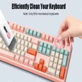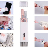 این کیت تمیزکننده 7 کاره شامل 1 برس بزرگ با تراکم بالا، 1 عدد پد تمیز کننده فیبری (مخصوص سطوح مانند مانیتور) ، 1 قلم تمیز کننده گوشی (شامل نوک فلزی، اسفنج و مینی برس با چگالی بالا)، 1 عدد کلیدکش کیبورد و 1 بطری اسپری می باشد. این سرویس پاک کننده چند منظوره می تواند هر خواسته شما را برای تمیز کردن وسایل الکترونیکی برآورده کند. اولین ابزار یک خودکار تمیزکننده تاشو با نوک سیلیکونی، برس کوچک سخت و اسفنج جمعکننده کثیفی ها ، مناسب برای تمیز کردن ایرپاد و سایر هدفونها یا هندزفری ها. نوک سیلیکونی برای تمیز کردن لکه های شکاف است. دومین ابزار برس کوچک برای تمیز کردن گرد و غبار سطوح عمیق و اسفنج دسته دار برای تمیز کردن حفره های کیس شارژ ایرپاد ها میباشد. ابزار سوم تمیز کننده لپ تاپ، رایانه، تبلت و صفحه کلید می باشد کافیست برس نرم بزرگ را بکشید تا گرد و غبار روی رایانه، لپ تاپ، تبلت و صفحه کلید پاک شود. و همچنین می توانید از کلیدکش کیبورد جدا کردن کلیدهای صفحه کلید مکانیکی برای انجام این کار استفاده کنید. ابزار بعدی تمیز کننده مانیتور، صفحه نمایش، دوربین، ساعت و تلویزیون میباشد: در کنار یک بطری خالی اسپری 5 میلیلیتری، مایع تمیزکننده یا آب را درون بطری قرار میدهید و از صفحه فیبری برای تمیز کردن صفحههای مختلف استفاده میکنید. به عنوان مثال صفحات نمایش ، تلویزیون، ساعت، دوربین و غیره.اندازه جمع و جور و سبک وزن: 7 ابزار تمیز کردن کامپیوتر به طور مرتب در یک جعبه مستطیلی قرار گرفته اند. اندازه کیت پاک کننده فقط 4.88 * 1.73 * 1.18 اینچ و وزن آن تقریبا 80 گرم است. برای سفر به اندازه کافی کوچک است و می توانید آن را حمل کنید. در همین حال، شما همچنین می توانید هر ابزار تمیز کننده ای را به طور جداگانه بیرون بیاورید.