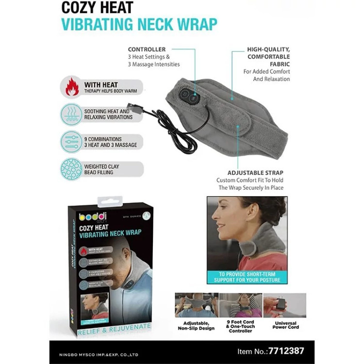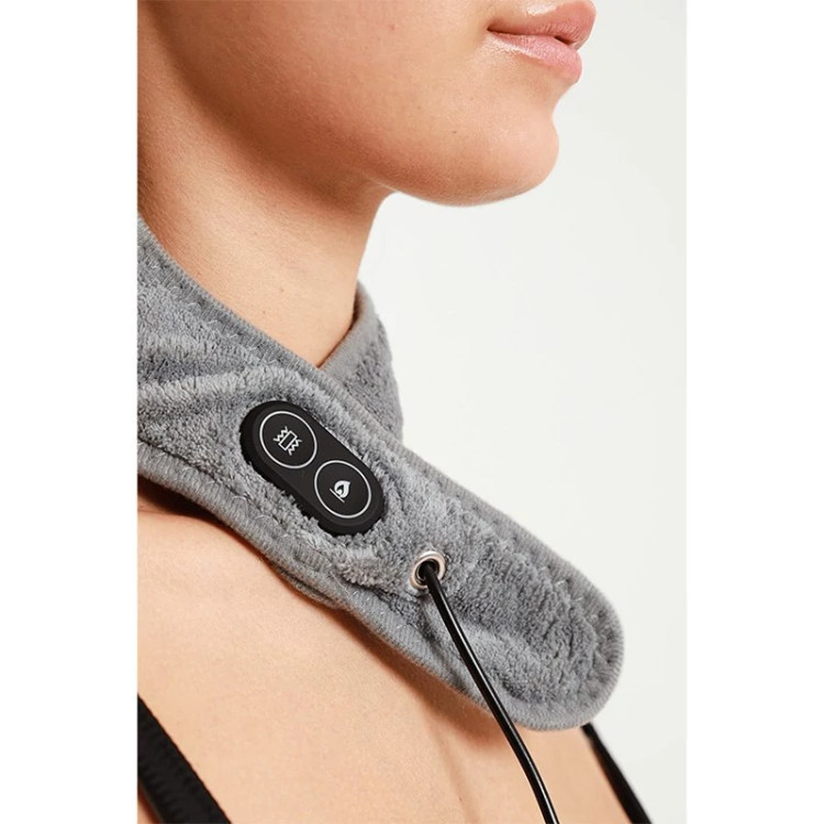 ماساژور و پد حرارتی برقی گردن با هدف تسکین درد و کمک به بهبود دردهای ناحیه گردن کمک میکند و به صورت حوله ای بسیار نرم بر روی ناحیه گردن بسته میشود. گرمای تسکین دهنده و ارتعاشات آرامش بخش سنگ های معدنی همراه با تنظیم گرما و ارتعاشات ماساژ با کیفیت بالا از قابلیت های این ماساژور میباشد همچنین پوشش پارچه ای 100% پلی استر و دانه های پرکننده 77% دانه های سفالی ، 23% نمد الیاف پلی استر و دارای بند قابل تنظیم میباشد.