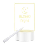 هر چه دلت میخواهد بنویس .همراه با چراغ خواب Creative light یک ماژیک مخصوص در اختیار شما قرار میگیرد و به شما این امکان را می دهد که متن عاشقانه و مورد علاقه ی خود را بر روی آن بنویسید و چراغ را روشن نمایید تا نوشته ی شما منحصر به فرد و رویایی تر دیده شود. همچنین شما می توانید علاوه بر نوشتن متن، طرح های کوچکی بر روی آن بکشید. طرح و متنی که بر روی صفحه ی چراغ، قرار می گیرد را می توانید در صورت نیاز به وسیله ی دستمال و یا الکل پاک نمایید و آن را تغییر دهید و به هیچ وجه نگران تمام شدن ماژیک محصول نباشید زیرا یدک این ماژیک نیز در بازار موجود می باشد.قابلیت تغییر نوشته در این چراغ، باعث می شود محصول برای شما هرگز تکراری و یا خسته کننده نشود. قابل ذکر است که از چراغ خواب مدل Creative light، جهت ایجاد خلاقیت در بین فرزندانتان نیز می توانید استفاده کنید و کشیدن طرح و یا نوشتن متن را به آنها بسپارید.