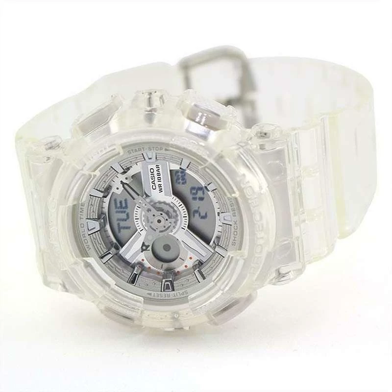 G-SHOCK عناصر دنده ای شکل عمقی سه بعدی ایجاد می کنند و عقربه های آنالوگ به G-SHOCK جلوه قوی و قدرتمند آن را می دهند. G-SHOCK به گونه ای طراحی و ساخته شده است که علاوه بر استحکام مطلق و ضد ضربه بودن، در برابر آب تا 20 بار نیز مقاوم بوده و همچنین دارای خواص ضد مغناطیسی برای زمان دقیق می باشد. GA-110 همچنین دارای بسیاری از عملکردهای مفید مانند زمان جهانی، کرونومتر، تایمر شمارش معکوس و هشدارهای روزانه است.