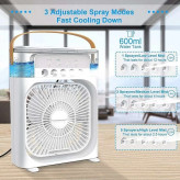 سایر مشخصات : دارای 5 نازل بخور سرد - دارای چراغ خواب RGB - دارای تایمر 3 حالته - 3 حالت میزان باددهی - دارای مخزن خوشبو کننده هوا - دارای مخزن آب 600 میلی لیتر برای افزودن آب یخ