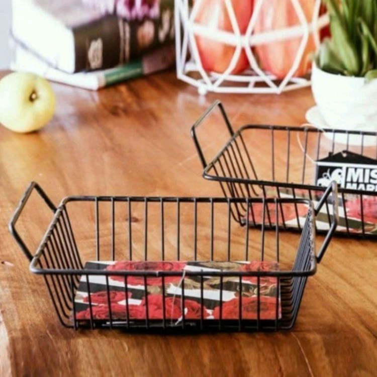سبد سرو فلزی مستطیل دو دسته رنگ مشکی سبد فلزی