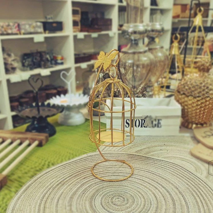 جا شمعی فلزی طلایی طرح قفس آویز پروانه دار