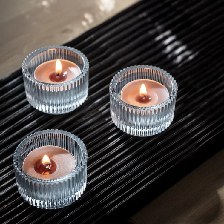 جا شمعی شیشه ای گرد جاشمعی طرح ایکیا بسته 4عددی