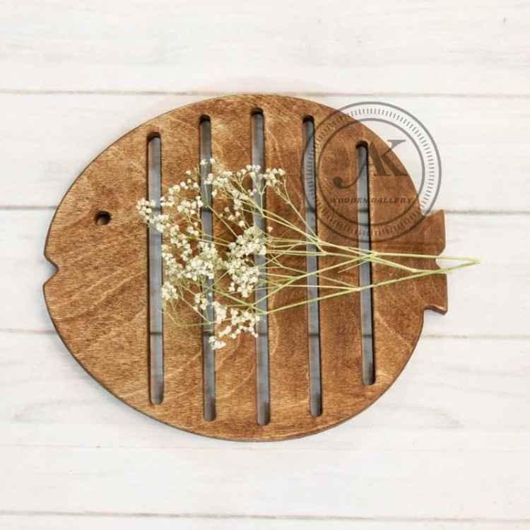 زیر قابلمه ای چوبی طرح ماهی چوب قابل شستشو