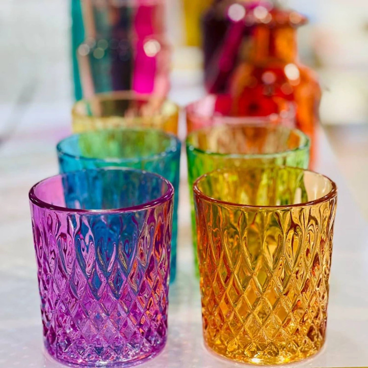 لیوان شیشه ای رنگی بسته 6 عددی لیوان رنگی شیشه ای طرح میشل