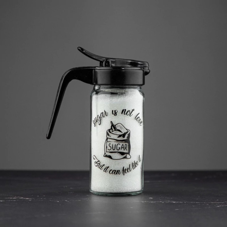 شکر پاش شیشه ای چاپ دار درب مشکی
