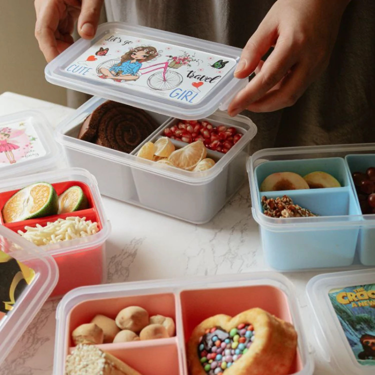 ظرف غذا مدرسه ظرف غذا کودک درب قفلی و دارای مقسم ظرف غذا چاپ دار