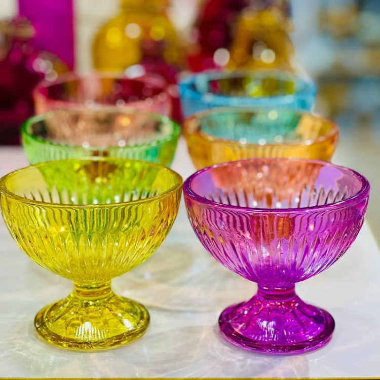 بستنی خوری شیشه ای رنگی بسته 6 عددی بستنی خوری رنگی