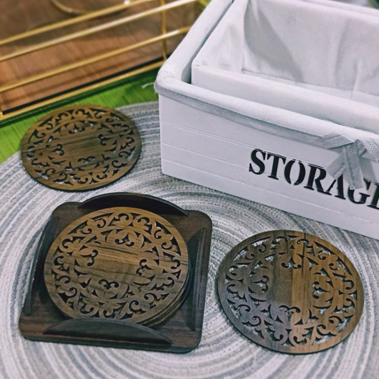خرید با ارزان ترین قیمت زیر لیوانی چوبی ۶ عددی به همراه پایه
