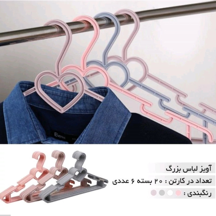 چوب لباسی سایز بزرگ بسته 6عددی آویز لباس جا کتی