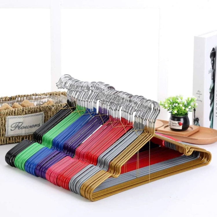 آویز لباس فلزی جاکتی فلزی رنگی روکش دار بسته 5 عددی