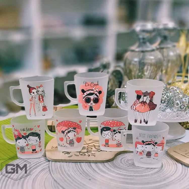 ماگ شیشه ای عروسکی طرح یخی چاپ دار