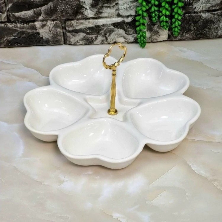اردو خوری و ظرف سرو سرامیکی۵خانه قلبی دسته دار