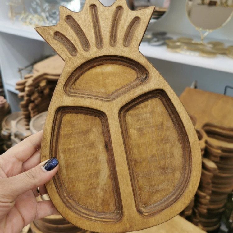 ظرف چوبی پذیرایی طرح آناناس 3خانه قابل شستشو