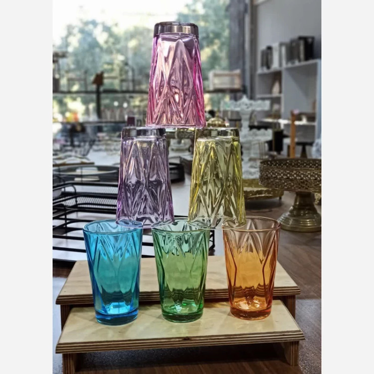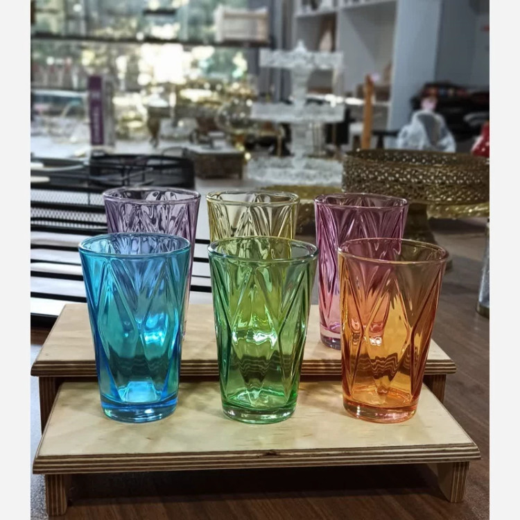 لیوان رنگی 6رنگ طرح لوزی لیوان 6 رنگ شیشه ای
