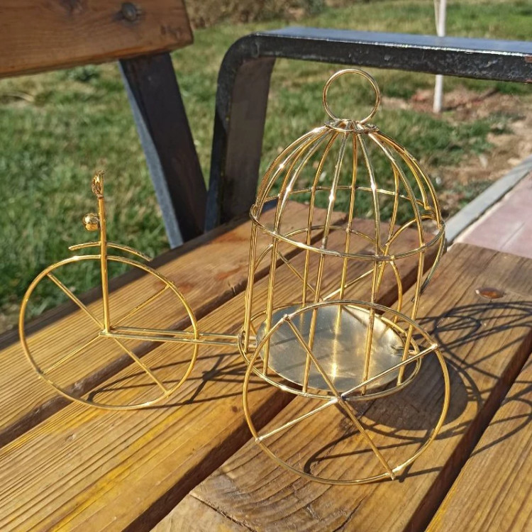 جا شمعی فلزی رنگ طلایی طرح کالسکه جاشمعی کالسکه